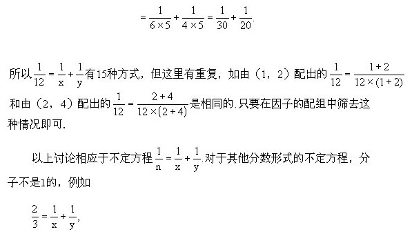 五年級奧數下冊:第七講 從不定方程1/n = 1/x + 1/y的整數解談起