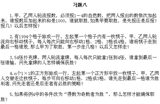 四年級奧數下冊:第八講 數學游戲習題